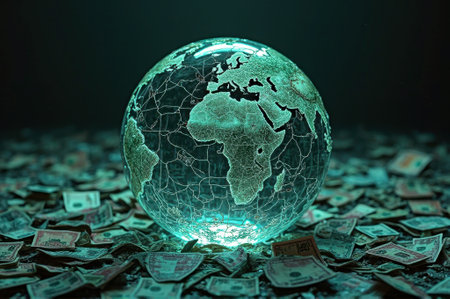 Globe over many american dollar bank notes