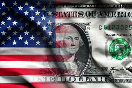USA national flag and currency usd money banknotes. Business and finance concept