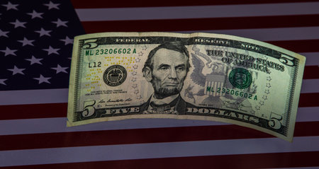 Banknotes of american dollar on national flag