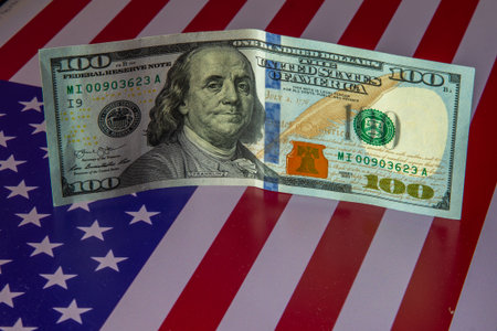 One hundred dollars with USA flag