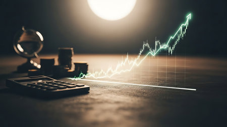 Visual representation of financial growth trends in stock market investment and trading strategies
