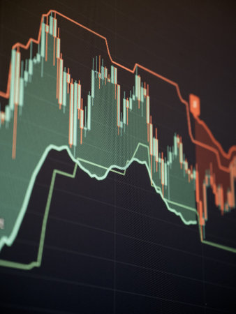 A detailed close-up view of a candlestick chart displaying stock data. The graphic illustrates financial trends with vibrant colors, aiding data analysis.
