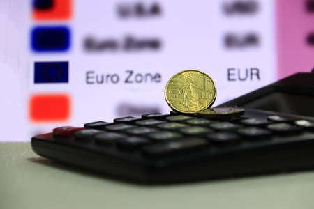 Close up shot of twenty euro cents with map of Europe on the coin face