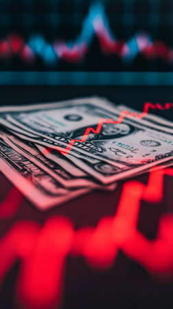 American dollar banknotes and graph on black background
