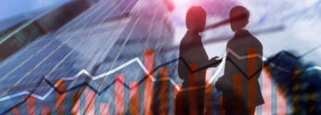 Creative stock chart and handshake backround. Teamwork, money and deal concept. Double exposure
