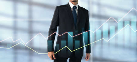 Smart business man with business chart background.