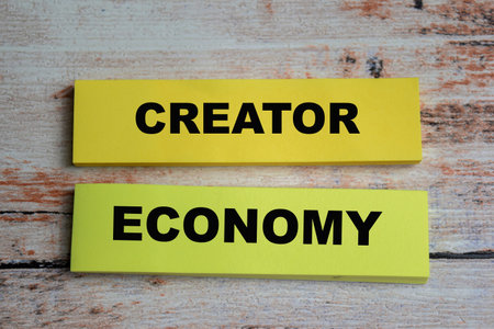 Concept of Creator Economy write on sticky notes isolated on Wooden Table.