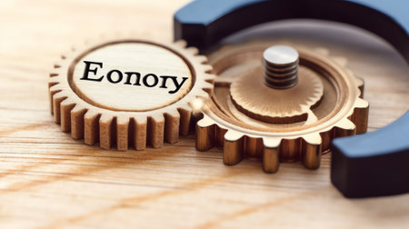 Wooden sign displaying the word Economy with an upward arrow, symbolizing growth and positive trends in business and finance. Perfect for financial themes.