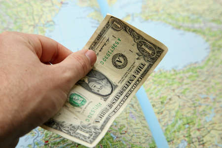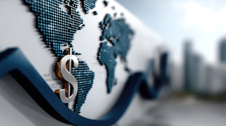 A striking visual of a dollar symbol against a detailed world map background, illustrating global finance dynamics and investment trends in today's economy.