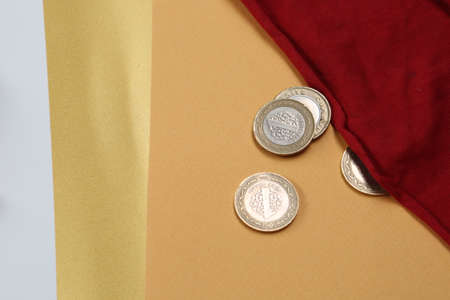 Multi Euro Dollar cash and coin, Different type of new generation banknotes, bitcoin, turkish lira