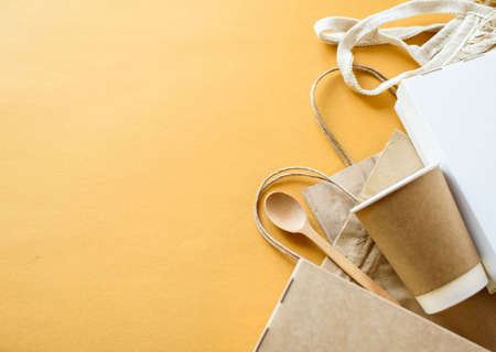 Eco-friendly disposable packaging, waste recycling concept, paper and cardboard waste, rubish sort and plastic free lifestyle.