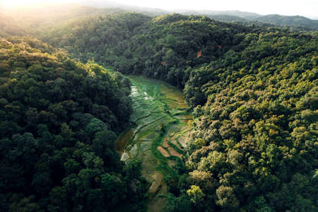 Aerial view of Nang Lae Nai Rice Terraces in Chiang Rai, Chiang Mai province, Thailand