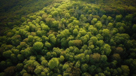 Top view from above Earth in a lush forest, Earth in your hands, Preserve Earth, Forest texture as seen from above, ecology, and a healthy atmosphere.