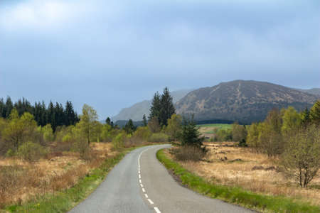 Beautiful scenic landscape of amazing Scotland nature and mountain trail road