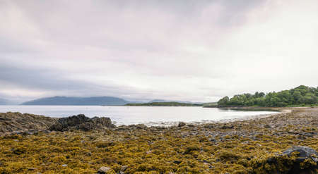 Scenic view of the Kyle Rhea, a strait splitting Skye from the Scottish mainland near Kylerhea village on the east coast of the Isle of Skye, in the Scottish Highlands