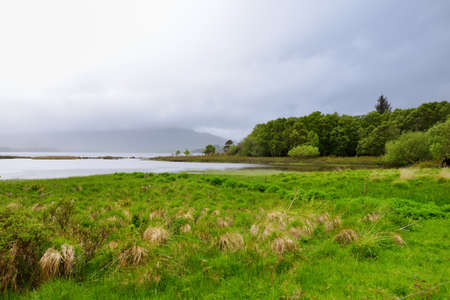 Nature landscape at Loch Lomond and The Trossachs National Park in a rainy day, Highlands, Scotland, United Kingdom