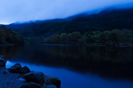 clouds on the steep hills lining the banks of loch tay in perthshire scotland