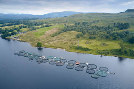 Fish farm salmon round nets in natural environment Loch Awe Arygll and Bute Scotland