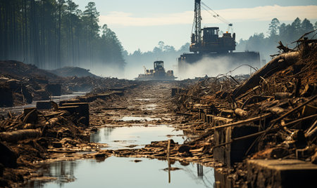 AI Generated. Polluted landscape near mining operation with debris and dark soil