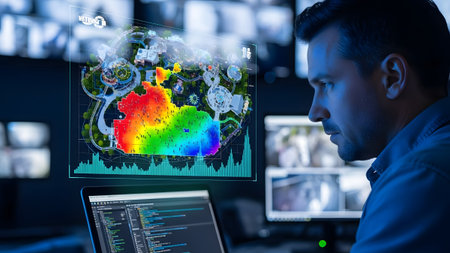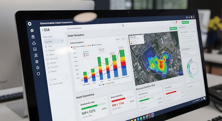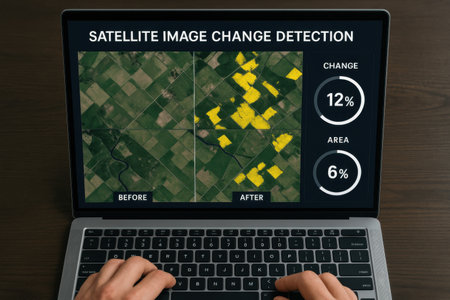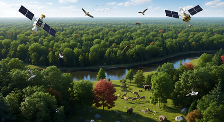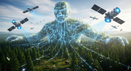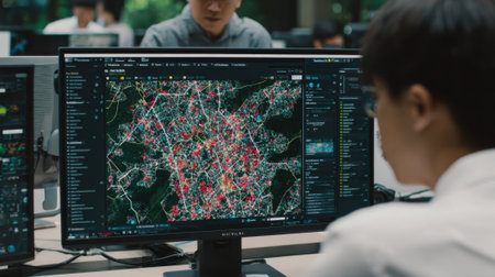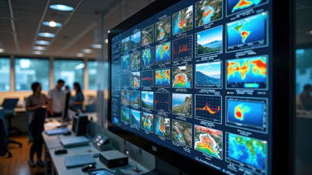 Medium shot of a dynamic interface displaying AIpowered satellite data analysis for accurate and enhanced geographical mapping in real time
