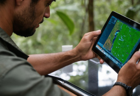 An agricultural engineer uses a tablet to analyze crop health. His integration of technology into farming enhances productivity.