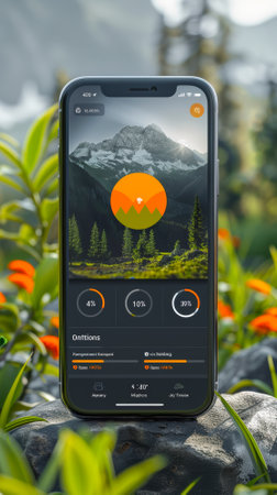 Exploring digital technology with a smartphone in a green plants