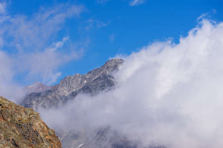 Mountains in the clouds on a sunny day. Caucasus, Russia