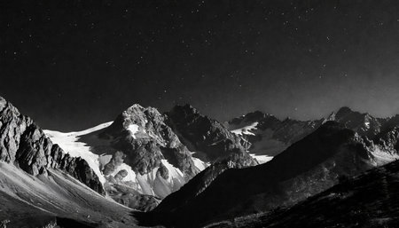 Mountains at night with stars and milky way in the sky