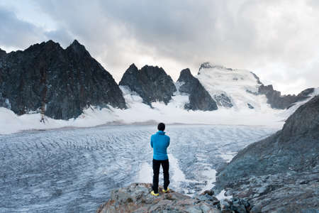A reflexive mountaineer looking a glacier, Ecrins National Park, French Alps