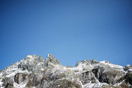Mountains and peaks landscape. Stubaier Gletscher covered with glaciers and snow, natural environment. Hiking in the Stubai Alps. Ski resort in Tirol, Austria, Europe