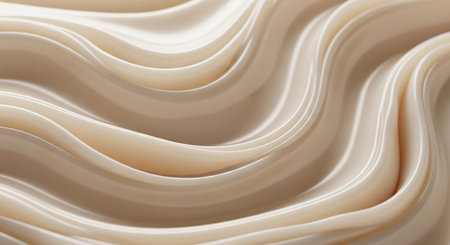 Abstract background of swirling cream colored liquid with smooth glossy waves and subtle highlights