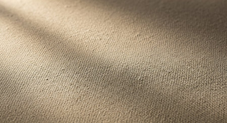 This close-up features organic linen fabric in a neutral beige hue, highlighting its soft, natural texture and large blank space suitable for adding text overlays in eco-friendly contexts.