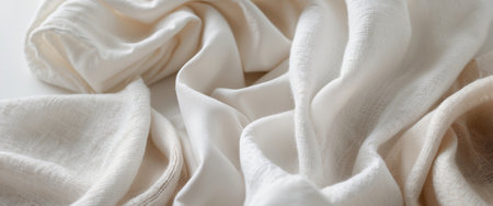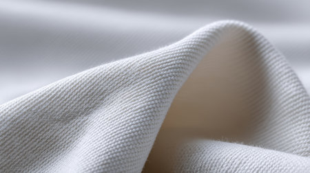 A captivating close-up of soft white fabric draped elegantly, showcasing delicate textures and folds illuminated by natural light, perfect for various design applications.