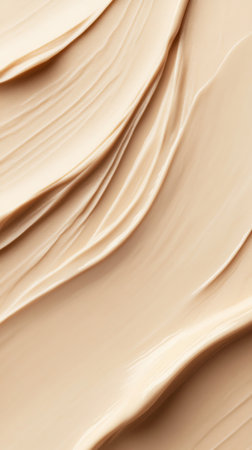 Creamy beige foundation makeup is creating smooth strokes on a surface, forming an artistic textured background. Ai generated image