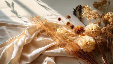 dried flowers and fabric in sunlight