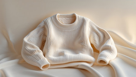 AI Generated. Cozy White Knit Sweater Mockup with Warm Tones
