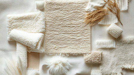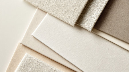 An array of textured fabric swatches in neutral shades arranged beautifully, perfect for design projects, interior decor, or art inspiration, showcasing variations in softness and weave.