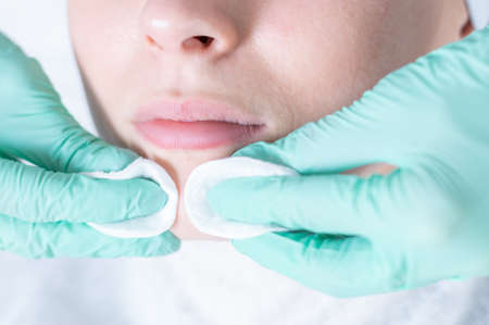Face building. Contour plastic for correcting the shape of the face. Markup skin for beauty treatment. Doctor prepares women's skin for beautiful face contour.