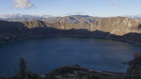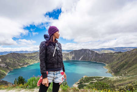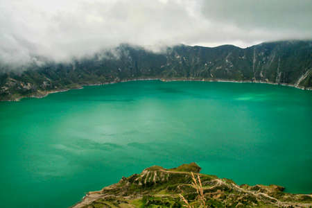 Quilotoa crater lake, bridge western volcano in the Ecuadorian Andes, Ecuador.