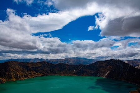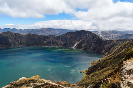 Crater of Quilotoa volcano, filled with turquoise water. Cotopaxi, Ecuador
