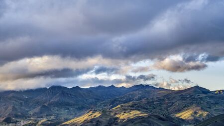 White clouds enter the Andean highlands at sunset in Simiatug