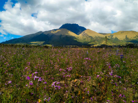 Imbabura Volcano and Plants in Otavalo - Ecuador This photo shows the surrounding vegetation and the background of the Embabura volcano, located in Otavalo - Ecuador.