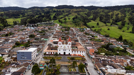 San Jose de la Montaña, Antioquia, Colombia. August 31, 2025. Aerial drone view. Municipality with 3,647 inhabitants.