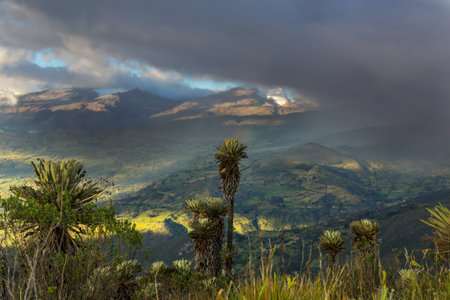 Dramatic high contrast sunset in Cubilin village in Ecuador. Cimborazo province, part of Sangay national park.