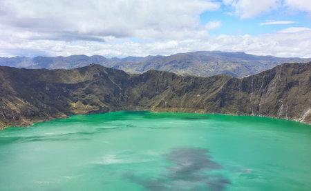 Aerial view of andes range mountains from top of quilotoa crater, Latacunga, Ecuador
