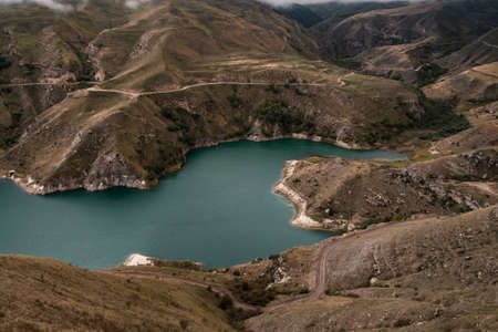 Mountain lake with turquoise water on a cloudy day. Elbrus region