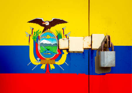 Ecuador flag is on texture. Template. Coronavirus pandemic. Countries may be closed. Locks.