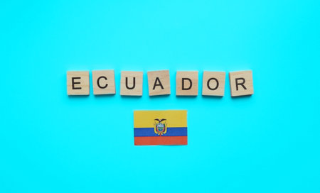 August 10, Independence Day in Ecuador, the flag of Ecuador, a minimalistic banner with the inscription in wooden letters