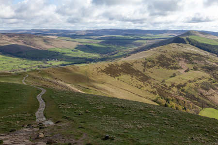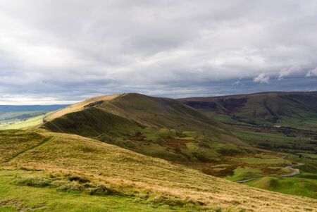 View of Mam tor in Peak district, an upland area in England at the southern end of the Pennines, UK