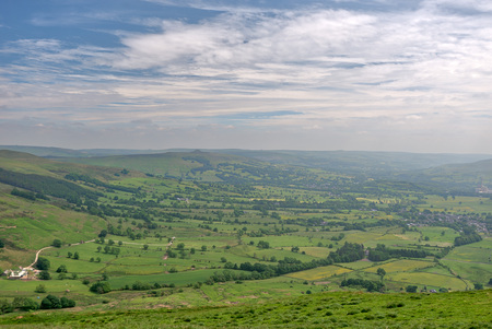 Panoramic view of the countryside in the Peak District National Park, UK